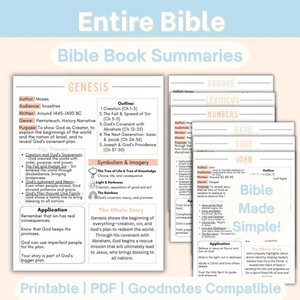 Are you looking for a simple, organized way to understand the entire Bible? The Complete Bible Overview and Reflection Sheet Bundle is a beautifully designed resource that takes you through all 66 books of the Old and New Testaments. With easy-to-read overviews and matching reflection sheets, it’s the perfect tool for beginners and seasoned believers alike to engage with Scripture in a meaningful way.